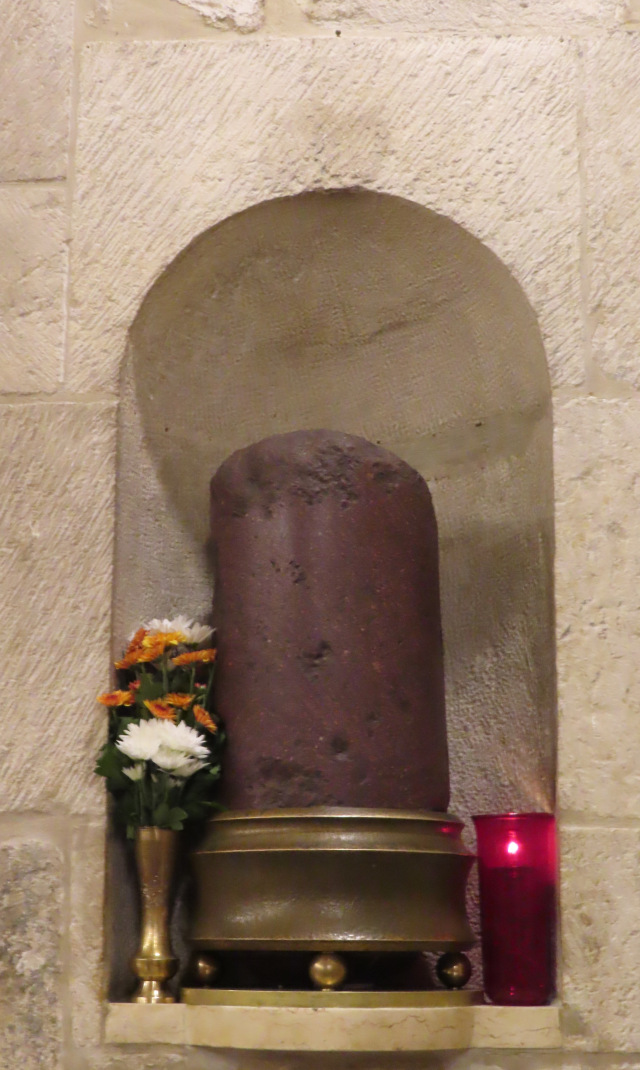- The stone pillar at the Judgment Hall of Caiaphas, to which Jesus was chained during the early hours of Good Friday.